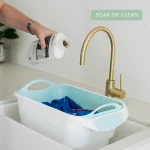 - Soaks, agitates, cleans & disinfects.